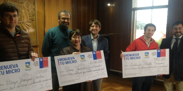 En la sala de reuniones de la Intendencia Regional de Los Lagos, las autoridades regionales y de transporte hicieron la entrega simbólica de cheques para el subsidio de renovación de flota, en el marco del Programa “Renueva Tu Micro”. En este sentido, el Ministro (s) de Transportes y Telecomunicaciones, Cristián Bowen anunció que este 2015 el Ministerio ha dispuesto de 508 millones de pesos para subsidiar la renovación de buses antiguos de locomoción colectiva que circulan por diversas ciudades y localidades rurales de la región.